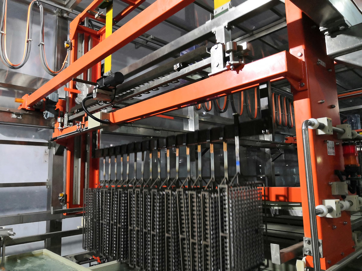 高效節(jié)能的陰陽極排布,電流效率高,上下料輔助機(jī)構(gòu)。廢水、廢氣在線回收系統(tǒng),污染物零排放。