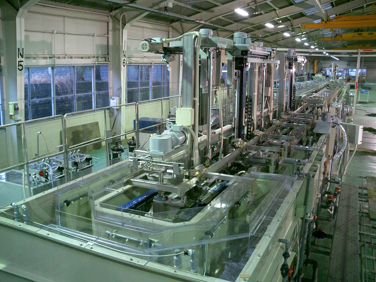 高效節(jié)能的陰陽極排布,電流效率高,上下料輔助機(jī)構(gòu)。廢水、廢氣在線回收系統(tǒng),污染物零排放。