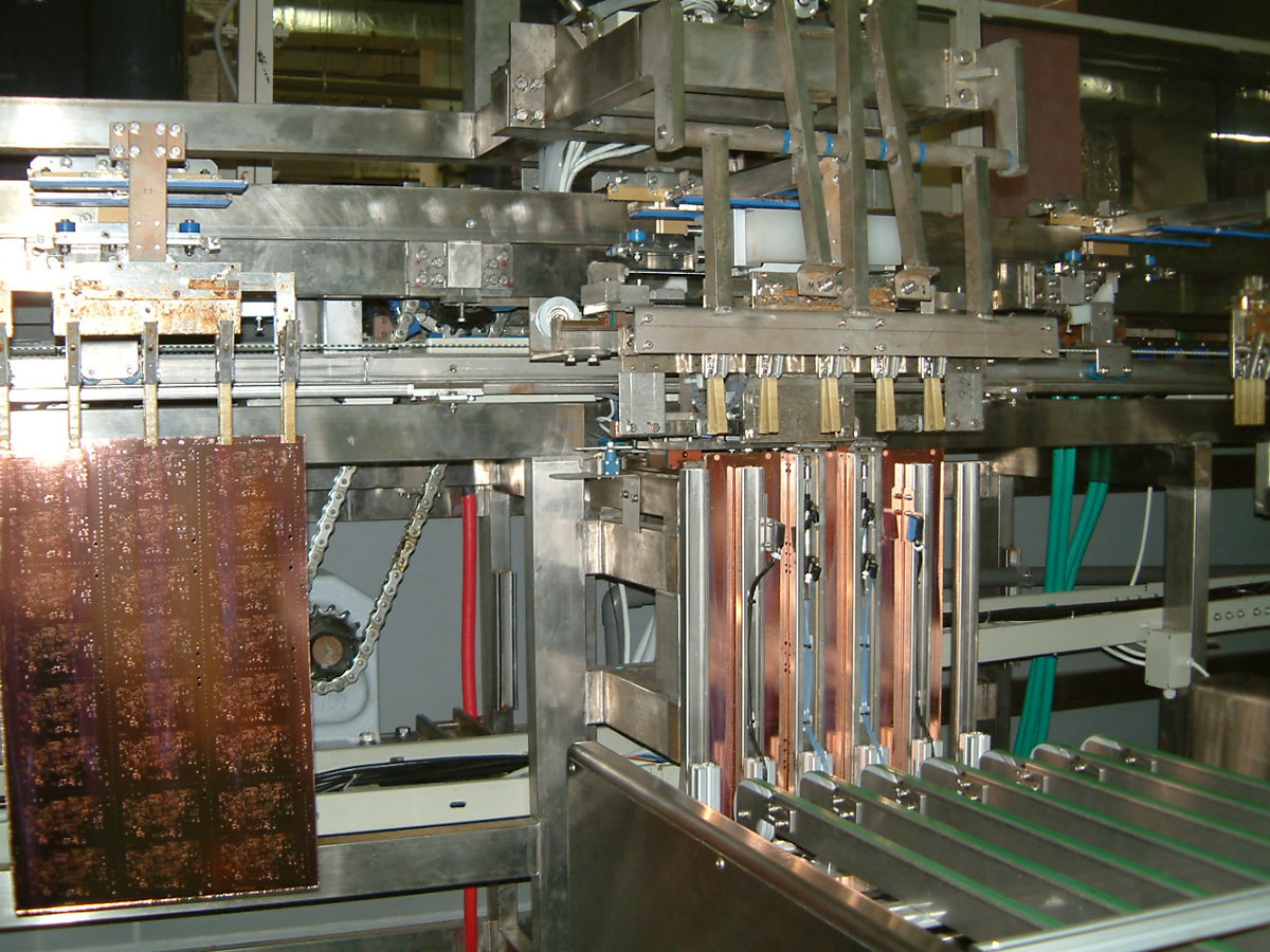 PCB垂直連續(xù)電鍍生產(chǎn)線,可滿足于0.06t-1.6t的厚度,鍍層均一性好深鍍能力強(qiáng)。