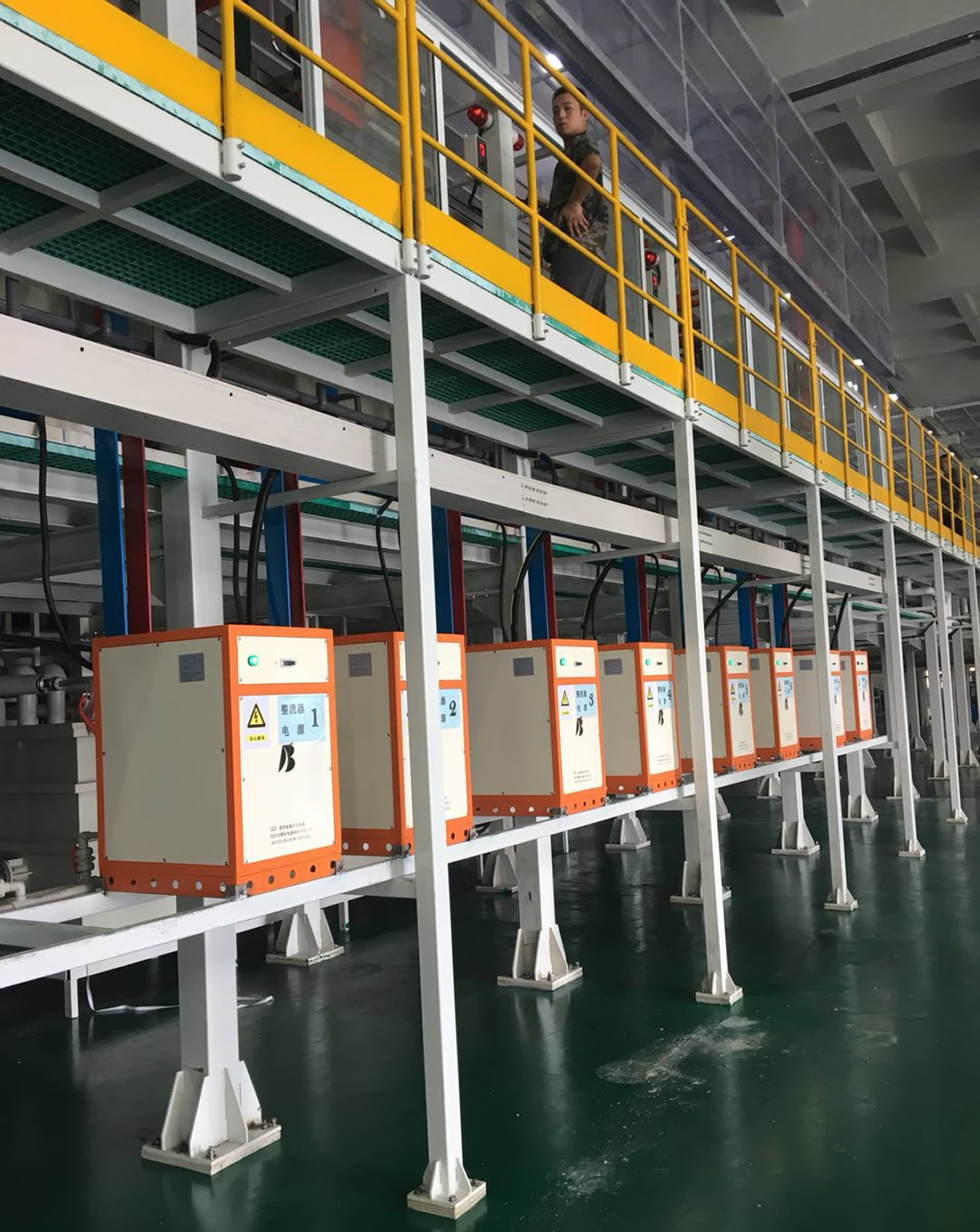 高效節(jié)能的陰陽極排布,電流效率高,上下料輔助機構。廢水、廢氣在線回收系統(tǒng),污染物零排放。