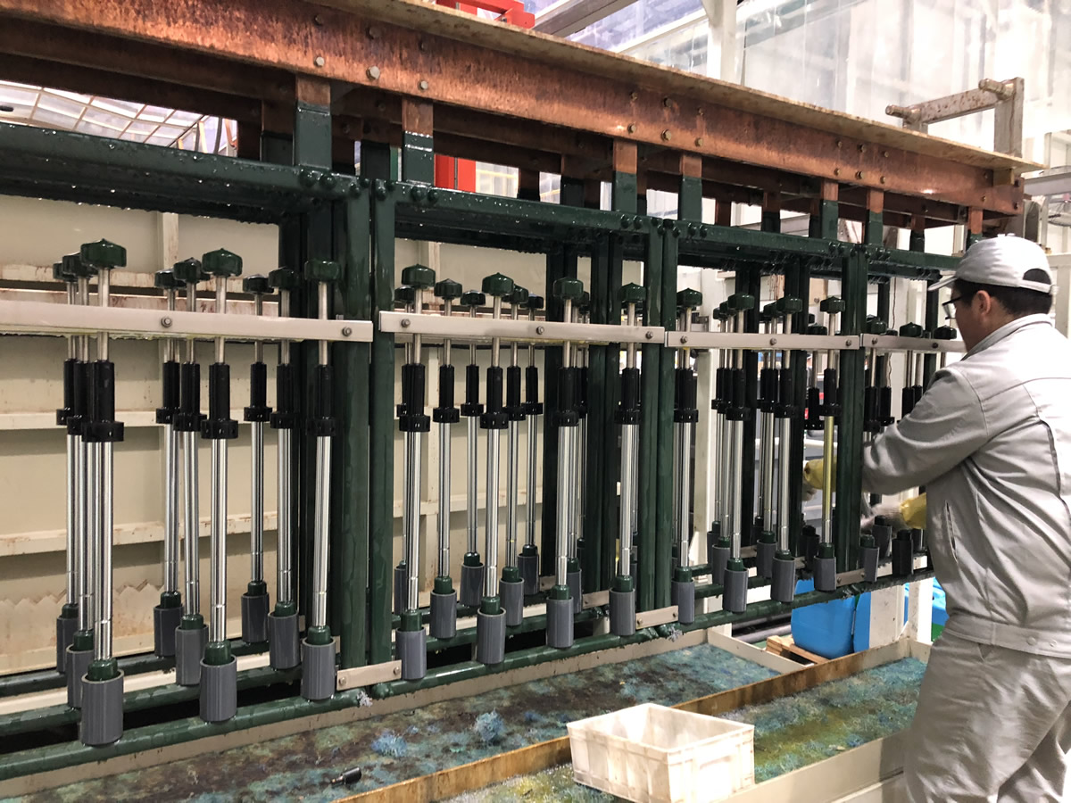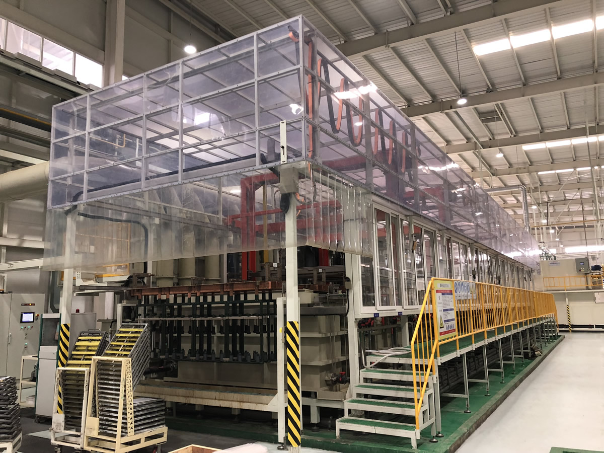 高效節(jié)能的陰陽極排布,電流效率高,上下料輔助機構(gòu)。廢水、廢氣在線回收系統(tǒng),污染物零排放。