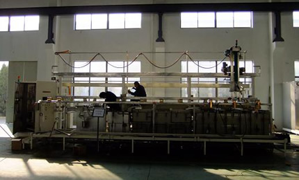 為某國(guó)際知名企業(yè)制作的一條鋁氧化生產(chǎn)線及出口墨西哥的一條鋁氧化生產(chǎn)線,已完成部件制造,正在公司內(nèi)進(jìn)行組裝。