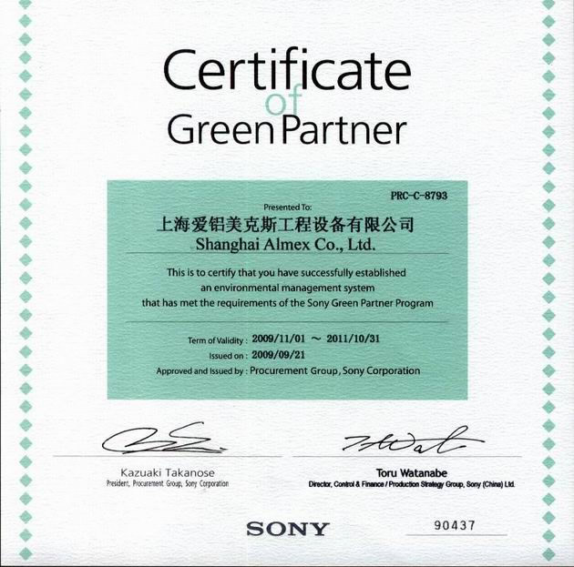 2009年9月份,我公司再次順利通過索尼公司的綠色合作伙伴的審核。